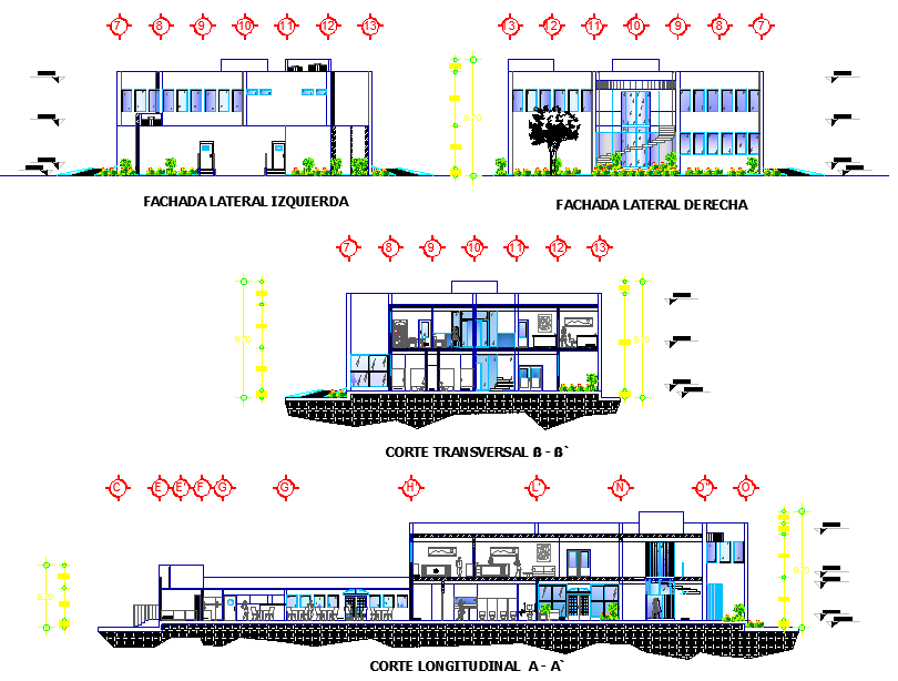 Elevation and section administration plan detail dwg file, including front elevation detail, side elevation detail, section A-A’ detail, section B-B’ detail, etc.