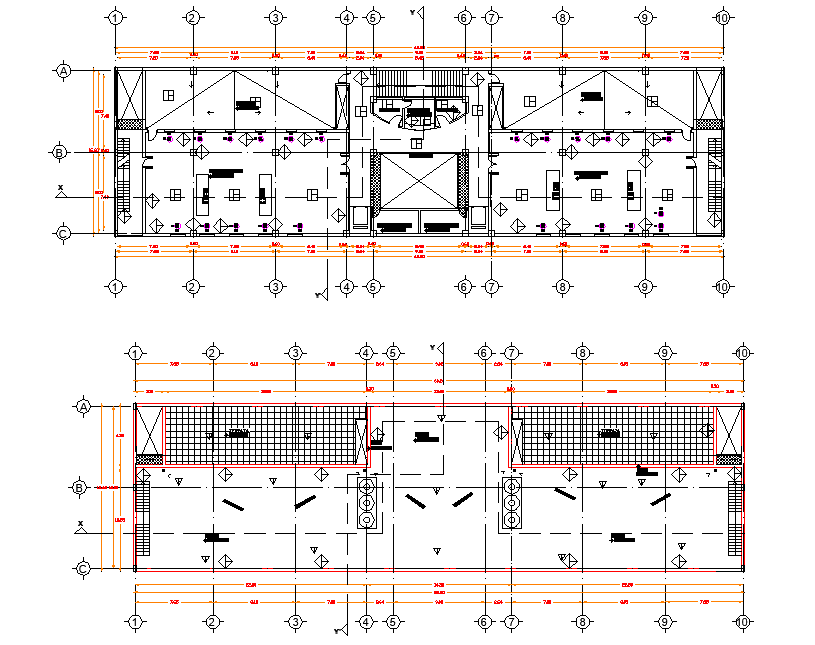 Office building detail dwg file, including centre line plan detail, dimension detail, naming detail, etc.