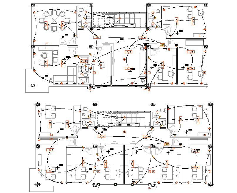 Electrical plan detail dwg file, with stair detail, circuit detail, furniture detail in table, chair, door and window detail, etc.