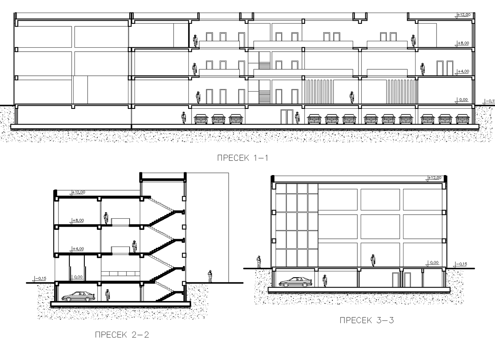 Commercial plan elevation. The front and back elevations with dimension detailing.