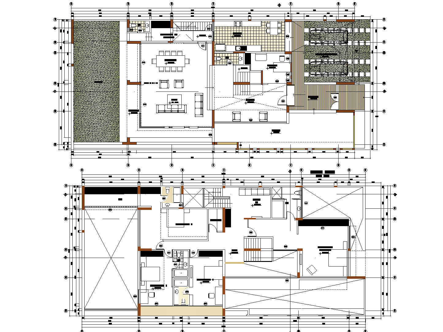 Curtain wall detail plan. Top view layout with options of a plan in furnished detailing and dimensions.