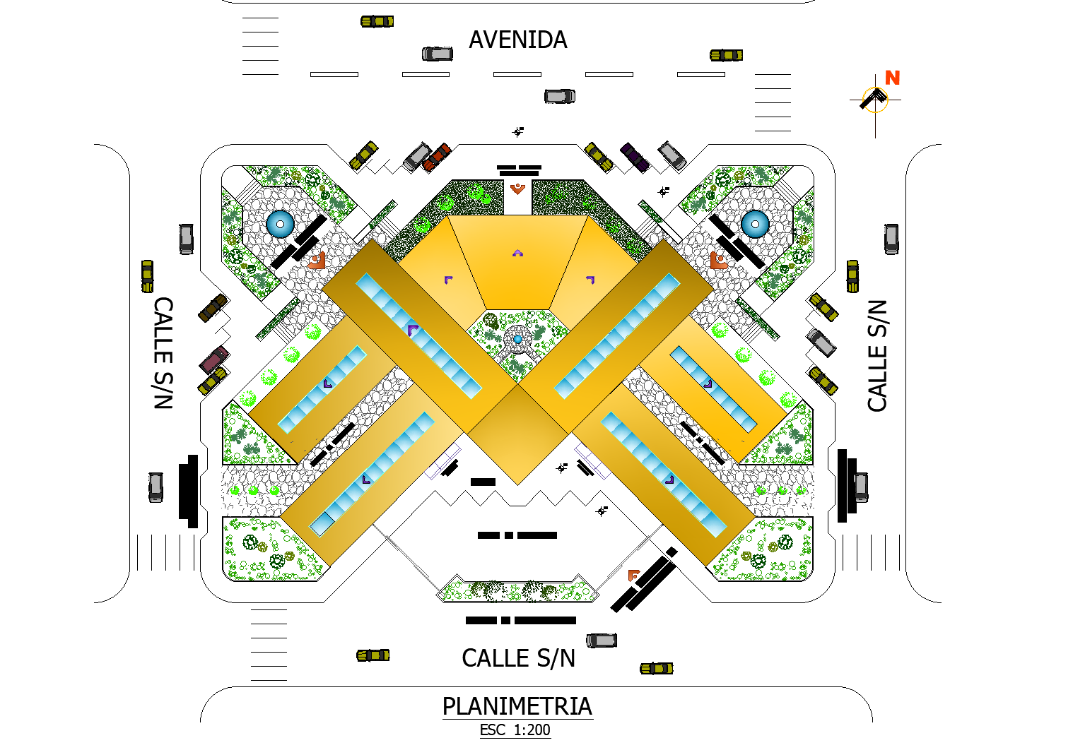 Urban market plan. The top view plan with detailing of the market area, rail yard, etc.,