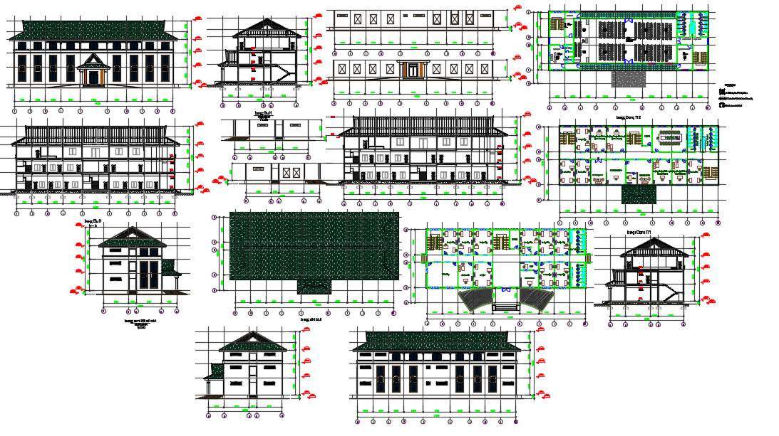 Admin Building Dwg file. The architecture layout plan of all level along of furniture detailing, section plan, construction plan, structure plan and elevation design of Admin Building project.