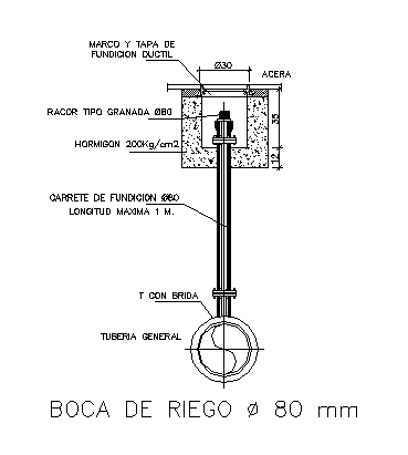 Irrrigation mouth dia.80mm with cast iron rod dia 80mm,concrete 200 kg