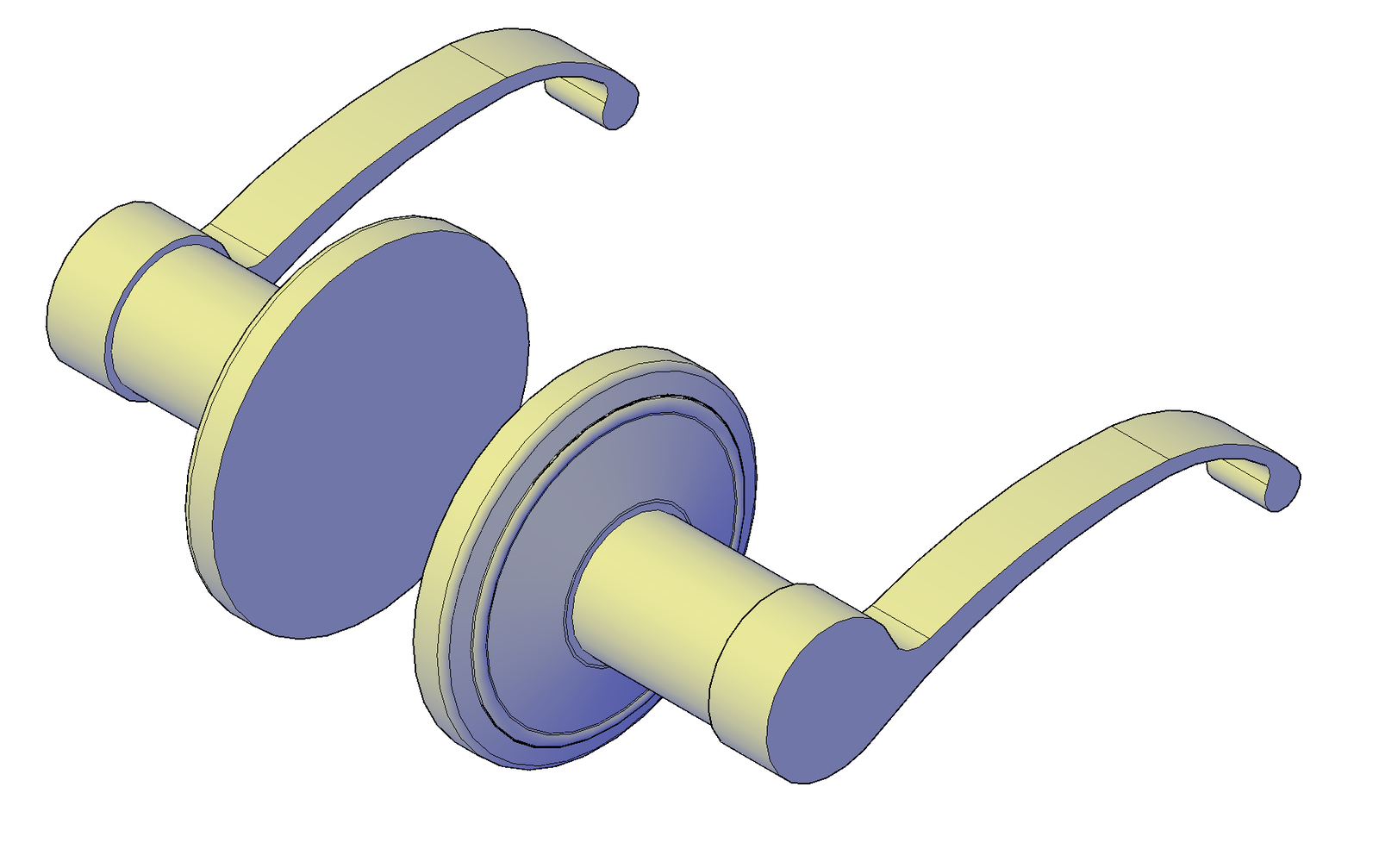 Modern door handle plan. 3D plan of a door handle. In exterior doors, they are often made of brass or stainless steel.