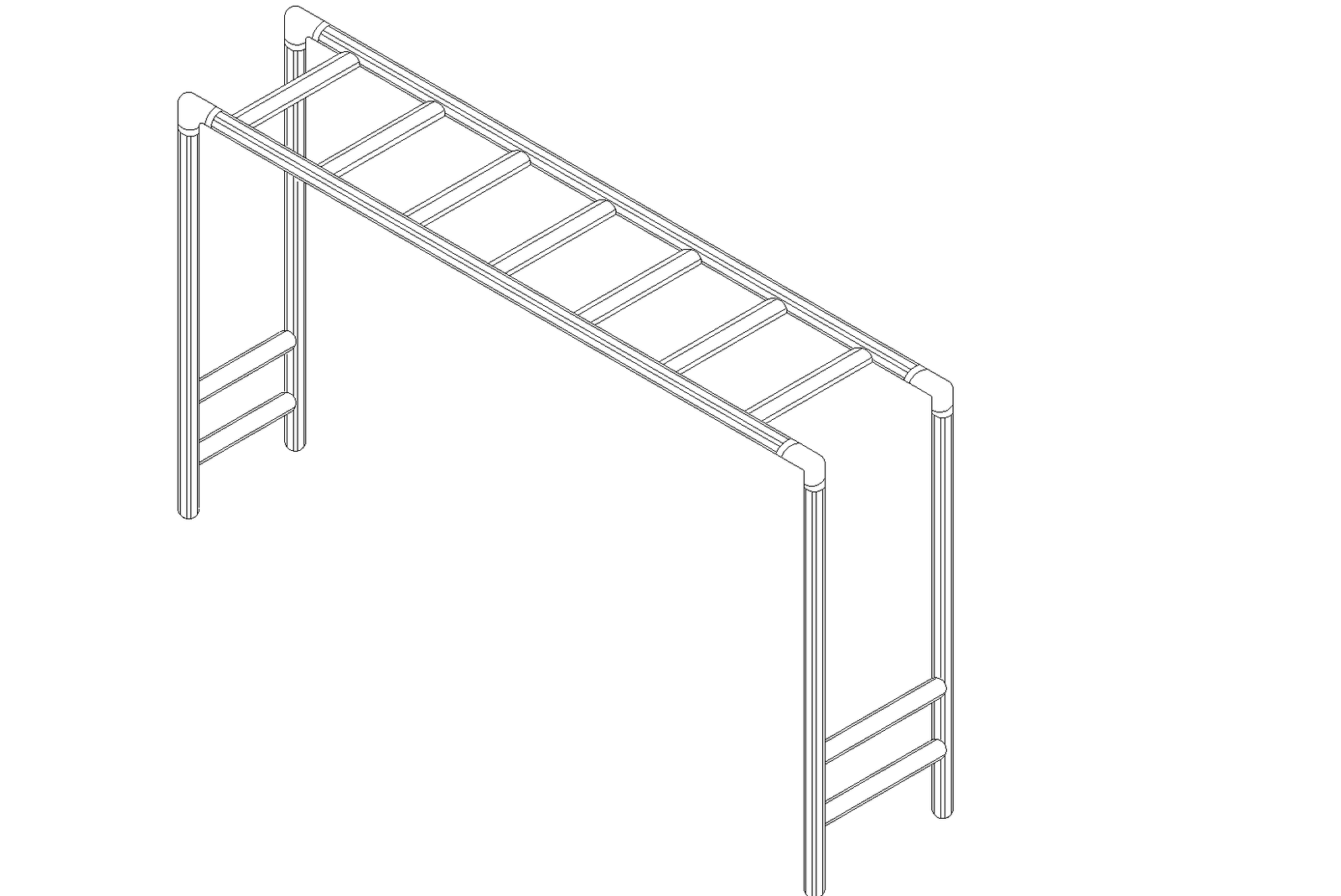 Playground-monkey bars plan. The rings are movable to make the equipment suitable for an exercise of different heights.