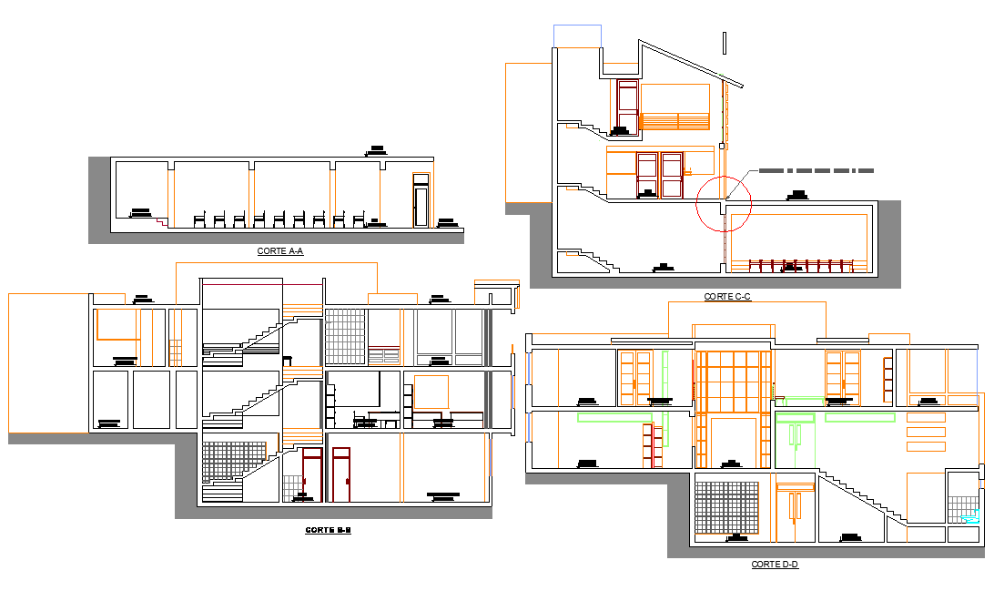 Section town hall center retail section detail dwg file, including section A-A’ detail, section B-B’ detail, section C-C’ detail, section D-D’ detail, etc.