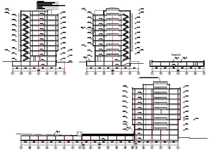Section high rise plan detail dwg file, with leveling detail, centre lien plan detail, dimension detail, naming detail, etc.