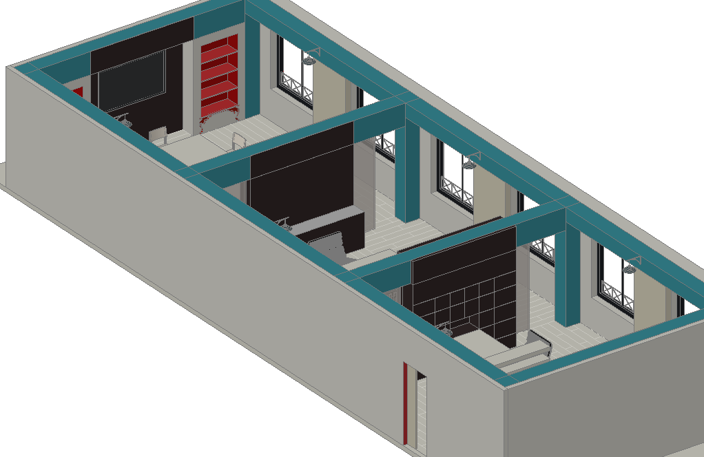 Office 3 D plan detail dwg file, with T.V unit detail, furniture detail in door and window detail, etc.