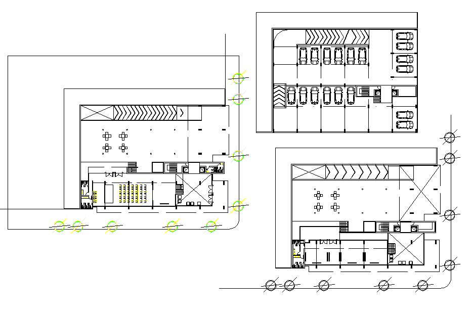 Building office plan detail dwg file, with centre lien plan detail dimension detail, aning detail, ramp detail, car parking detail, dimension detail, naming detail, etc.