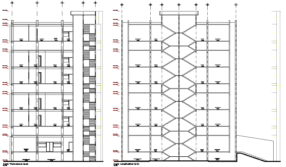 Section office plan detail dwg file, with section A-A’ detail, section B-B’ detail, centre lien plan detail, naming detail, dimension detail, etc.