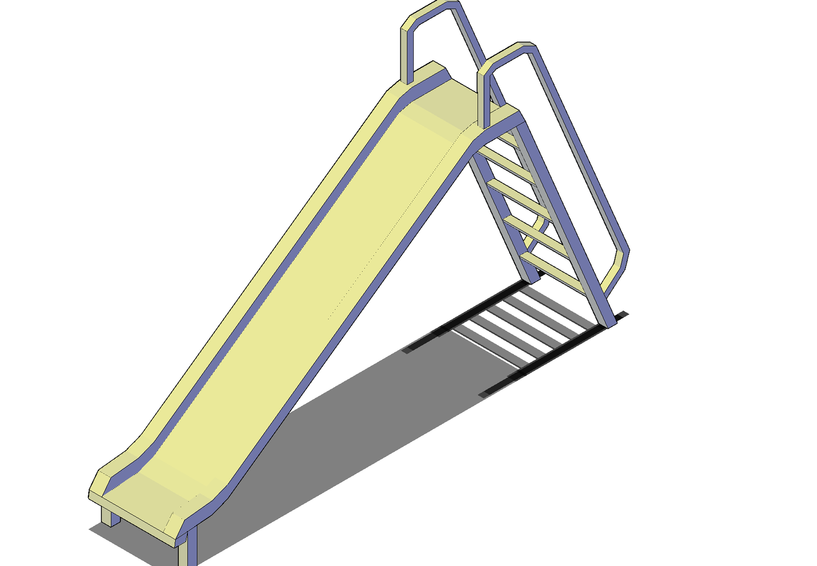 Slide plan. 3D plan of a slide with a detailing of stairs, railing, steel detailing, etc.,