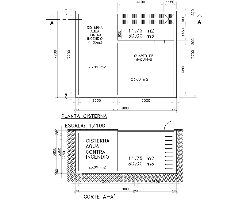 Tank detail dwg file, with dimension detail, naming detail, section detail, scale 1:100 detail, etc.