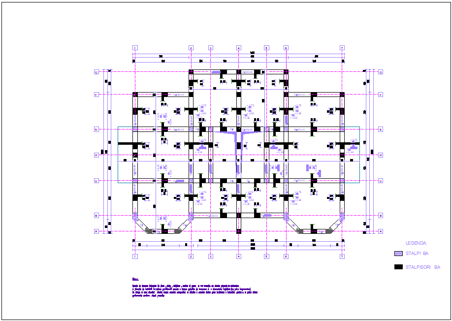 Second floor foundation with construction view for duplex dwg file