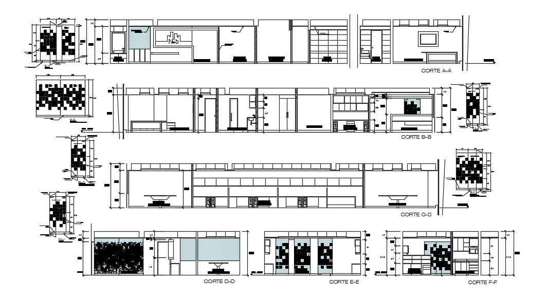 Inter-Office dwg file.Find here Inter- office detailing, furniture detailing, Corte A-A, Corte B-B, Corte C-C, Corte E-E, Corte F-F detailing in AutoCAD format.