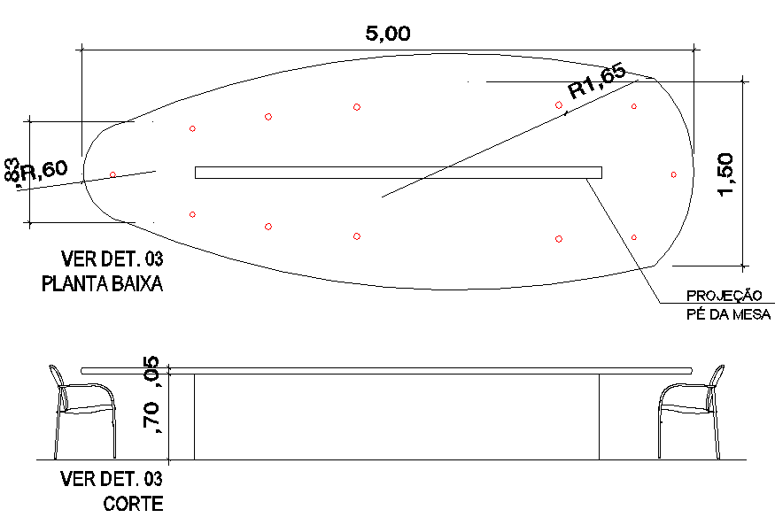Furniture detail, table and chair plan and section detail, dimension detail, naming detail, etc.