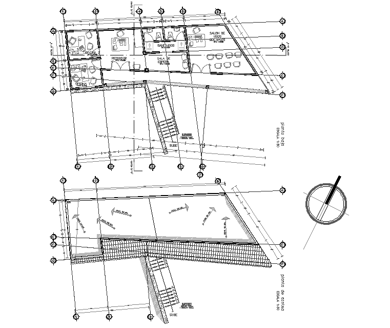 North direction inspection plan detail, stair detail, dimension detail, section line detail, centre line detail, scale 1:50 detail, etc.
