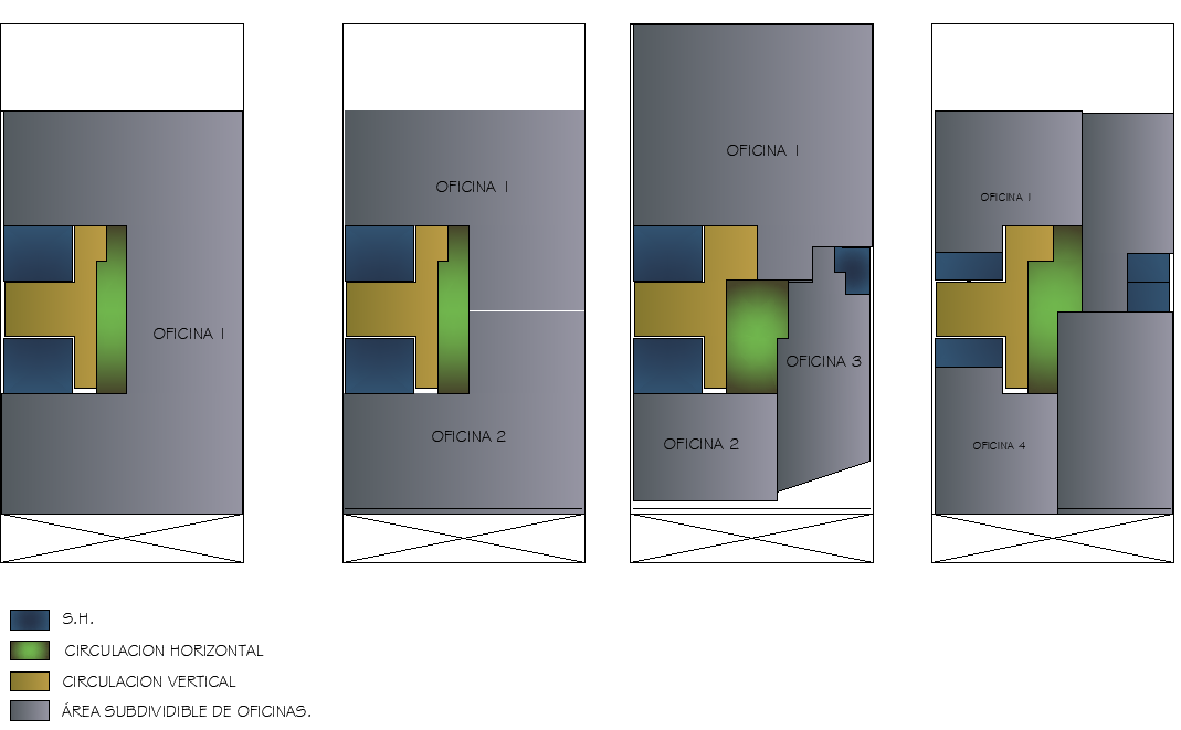 Office presentation detail, area detail, cut out detail, circulacion horizontal and vertical detail, naming detail, etc.