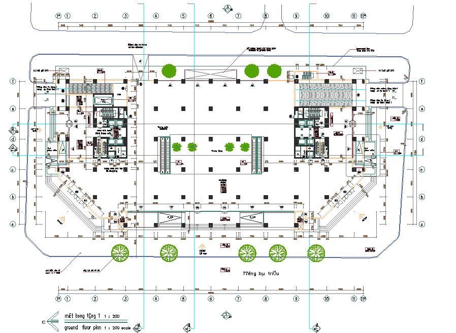 Commercial building plan detail, landsceping detail in tree and plant detail, section detail, centre lien detail, mesermrnt detail, stair detail, cut out detail, naming detail, etc.