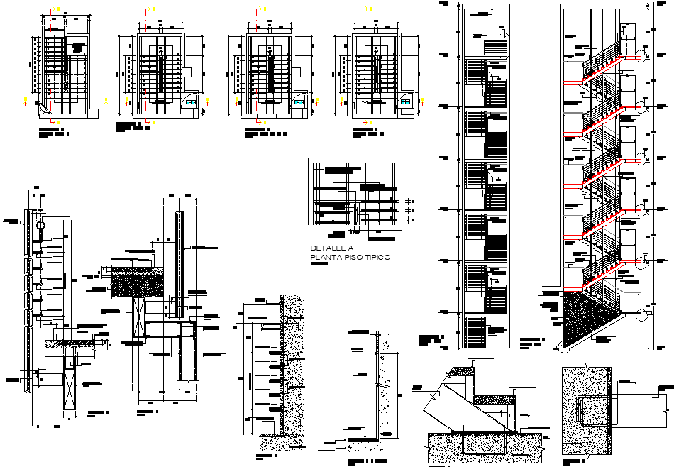 Stair plan and section detail, leveling detail, dimension detail, section line detail, naming detail etc.