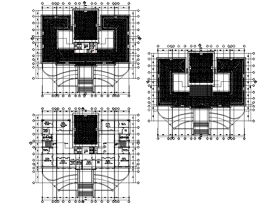 Fourth floor and terrace floor office plan detail, stair detail, centre line plan detail, dimension detail, section line detail, etc.
