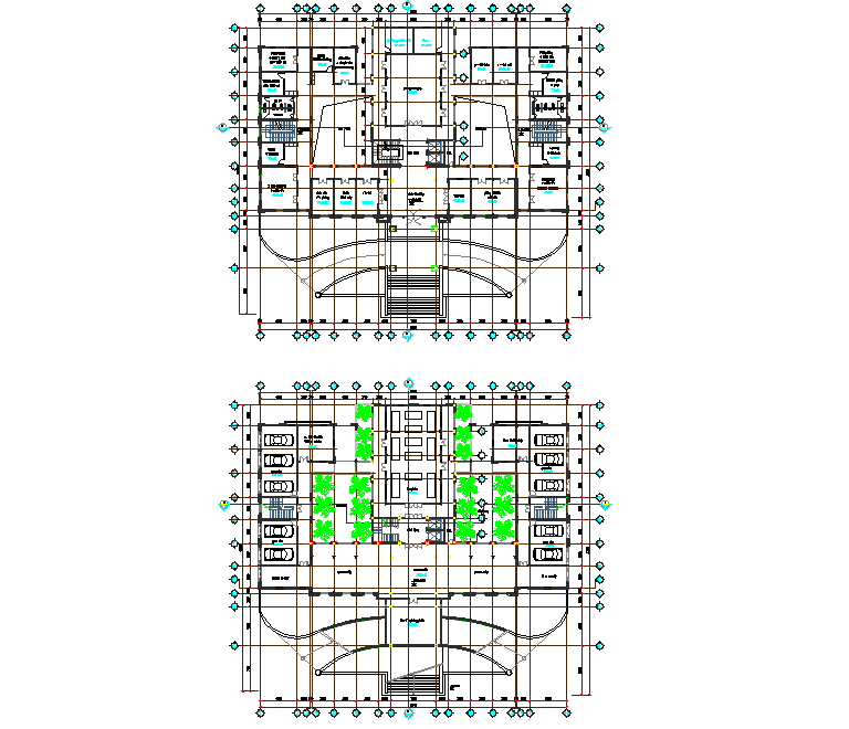 Corporate building plan detail, centre line plan detail, dimension detail, car parking detail, naming detail, furniture detail in door and window detail, etc.
