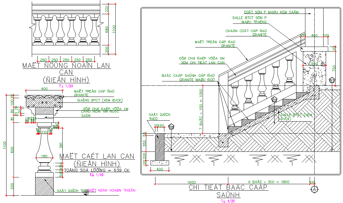Hand rail plan and section detail, diemnsion detail, naming detail, riser and tread detail, section line detail, etc.