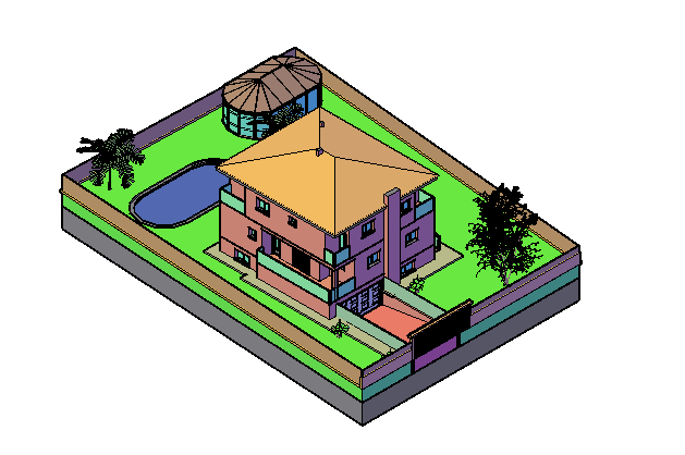 Top view elevation of bungalow, elevation of a bungalow dwg file, this auto cad file contains elevation of a bungalow, modern bungalow design, posh design, luxurious design etc