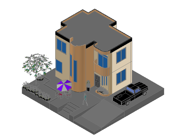 Bungalow elevation dwg file,3D elevation details of a building, here there is 3d elevation of a big building design, modern building architecture detailing , posh building design.