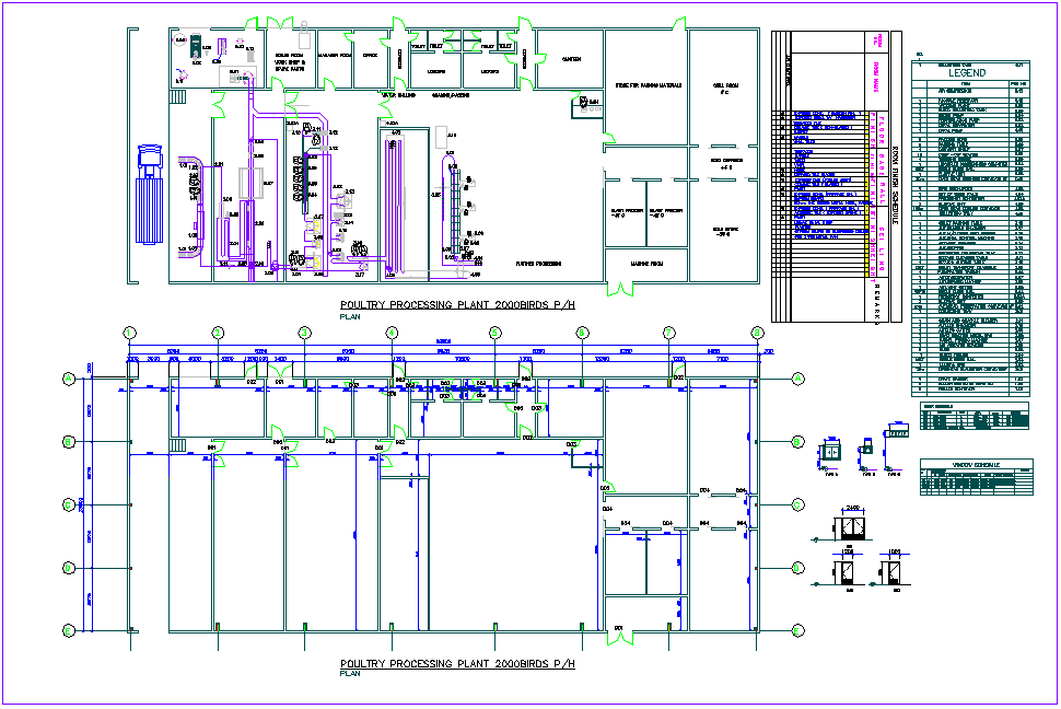 Poultry processing industrial plant plan with capacity of 2000 birds and item schedule dwg file