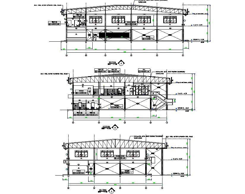 Section factory and canteen plan detail, section A-A’ detail, section B-B’ detail, section C-C’ detail, dimension detail, naming detail, etc.