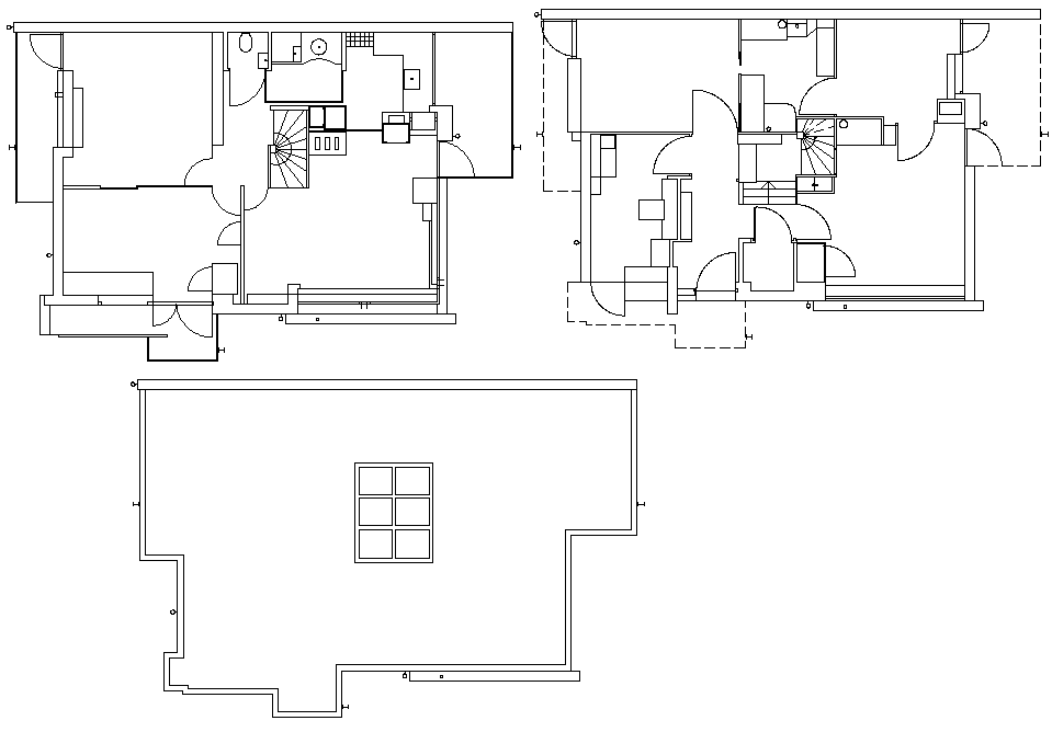 One family planning detail, ground floor to terrace floor plan detail, dimension detail, spiral stair detail, furniture detail in door and window detail, etc.