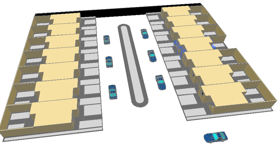 Top view layout plan of car show lane dwg file, Big scale architectural project, complete furniture detailing is shownm, vast project design