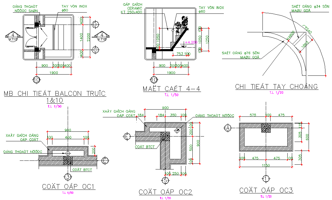 Plant stair section detail, centre line detail, dimension detail, naming detail, scale 1:20 detail, etc.