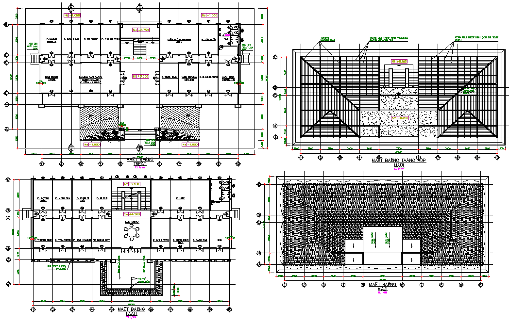 Head quarters plan detail, ground floor to terrace floor plan detail, furniture detail in door, window, chair and table detail, dimension detail, naming detail, etc.