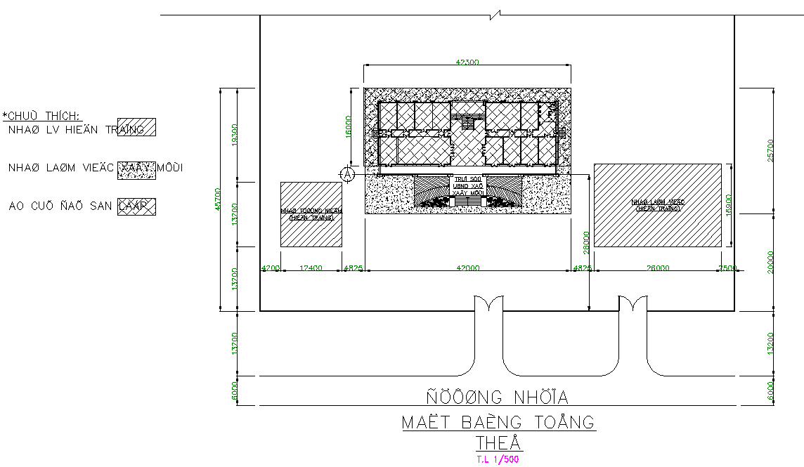 Planning office detail, hatching detail, centre line plan detail, dimension detail, naming detail, scale 1:500 detail, etc.