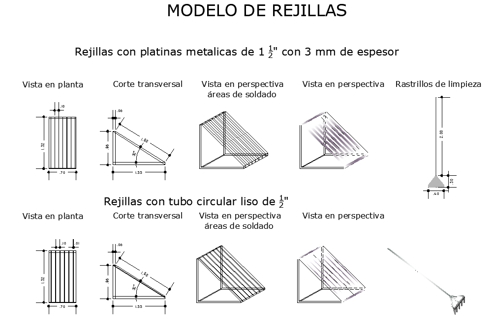 Grid with circular tube detail, dimension detail, radius detail, plan detail, section detail, etc.