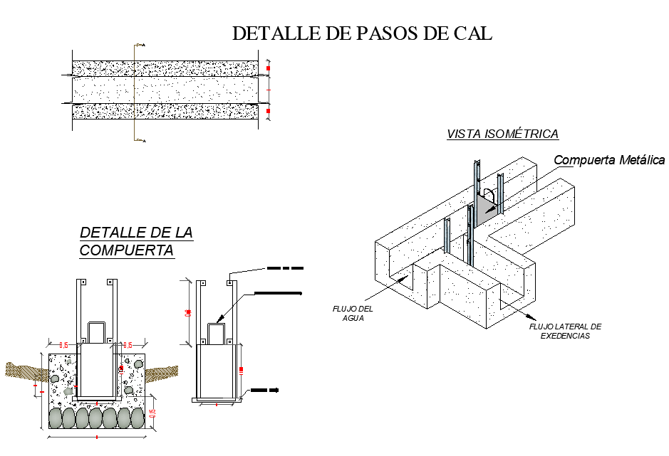 Gate detail, plan and section detail, dimension detail, naming detail, isometric detail, etc.