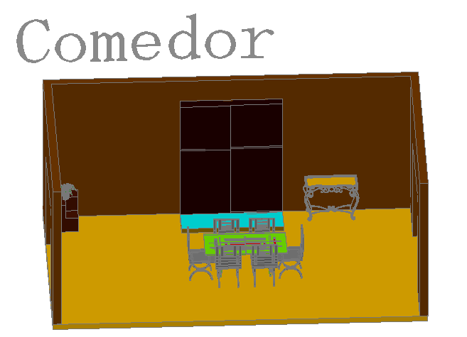 Dining table and seats details in 3d, dining table with 6 chairs and a center table design