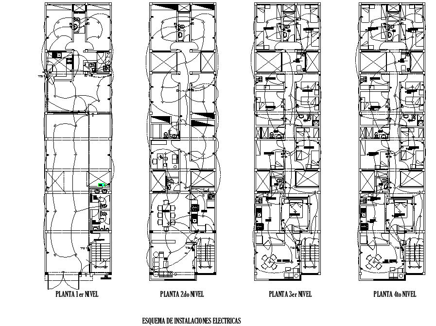 Electrical house plan detail, ground floor to terrace floor detail, cut out detail, kitchen detail, living detail, toilet detail, stair detail, bedroom detail, etc.