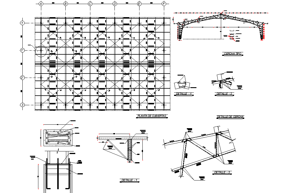 Roof plan and section detail, steel framing detail, centre line plan detail, dimension detail, naming detail, etc.
