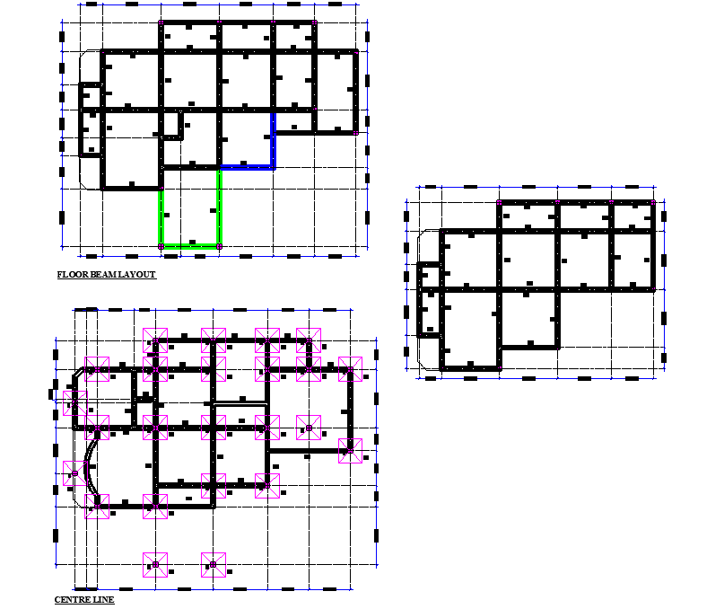 Floor beam layout detail, foundation detail, dimension detail, centre line detail, naming detail, etc.