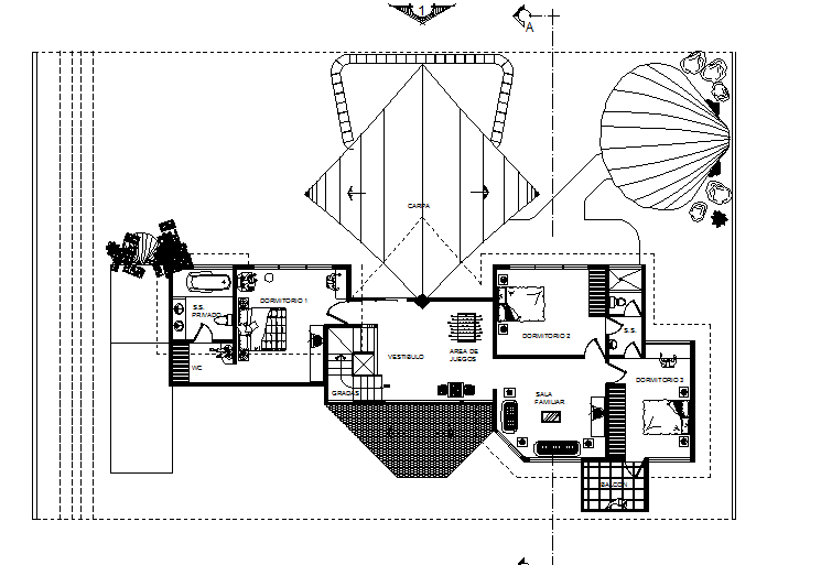 Architectural layout plan of a house dwg file, Big scale architectural project, complete furniture detailing is shownm, vast project design