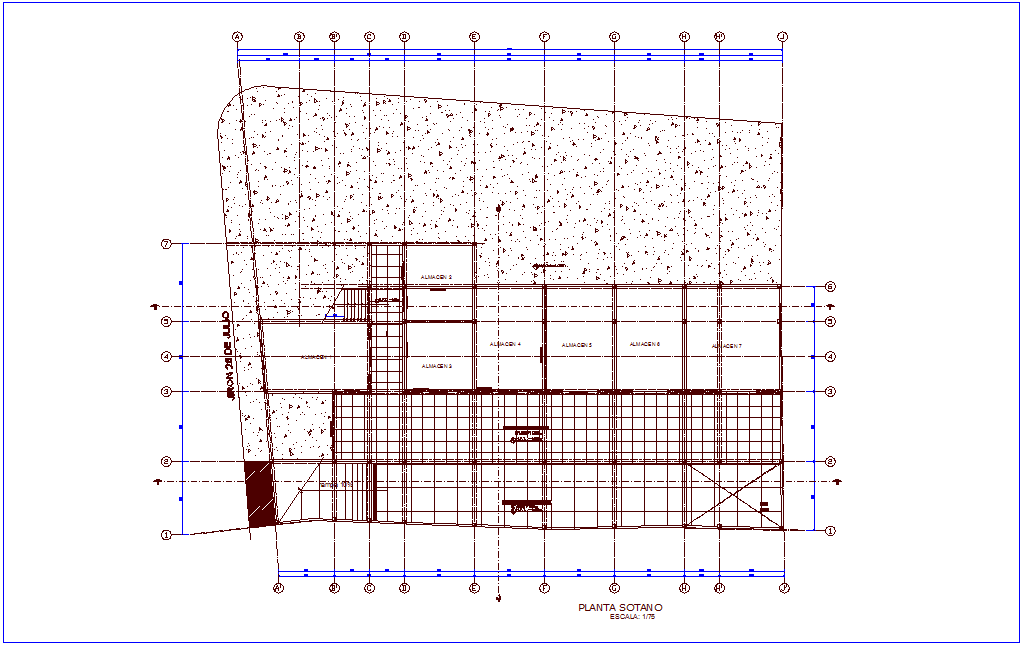 Basement floor plan of shopping center dwg file in plan with view of area distribution with wall view and view of platform view with necessary dimension.