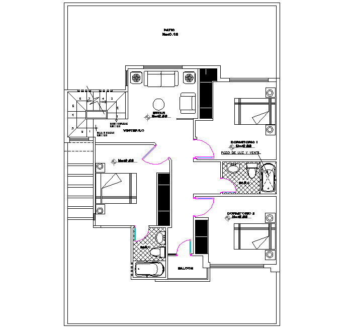 House plan detail, stair detail, naming detail, planning detail in living rrom, bed room detail, toilet detail, balcony detail, etc.