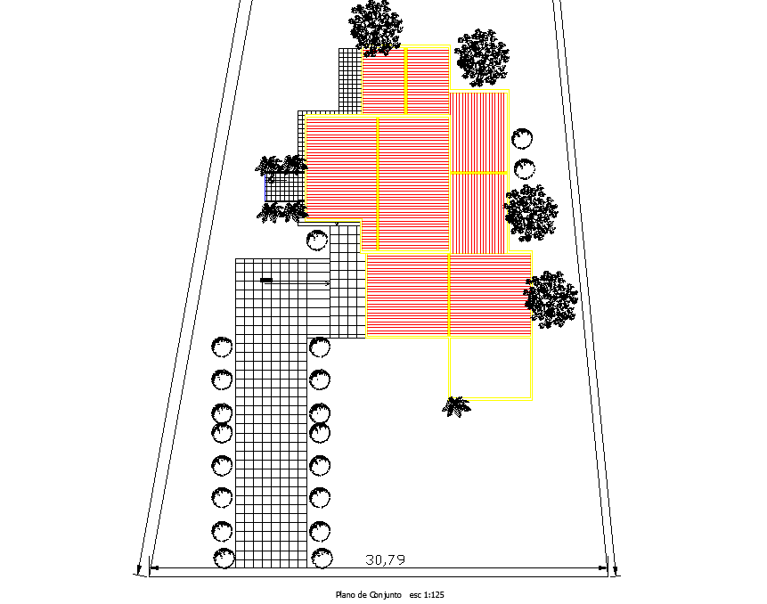 Layout plot detail, landscaping detail in tree and plant detail, hatching detail in building construction detail, etc.