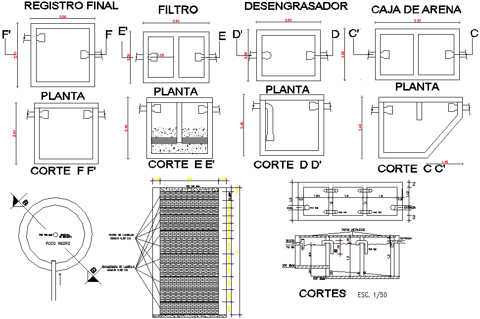 Section Treatment system for car washes plan detail, dimension detail, naming detail, section line detail, etc.