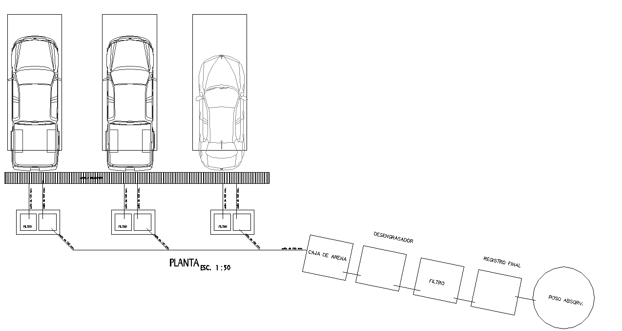 A treatment system for car washes plan detail, naming detail, scale 1:50 detail, etc.