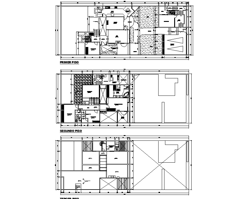 One family housing 3 levels with medical office plan detail, first floor to tarrace floor plan detail, dimension detail, naming detail, stair detail, etc.