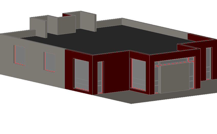 One family 3 D home plan, front elevation detail, terrace plan detail, etc.
